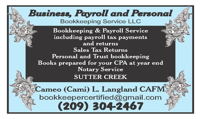 BUSINESS, PAYROLL AND PERSONAL BOOKKEEPING SERVICE, LLC. Cameo L. (Cami) Langland, CAFM 209-304-2467