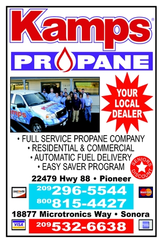 KAMPS PROPANE. Full service propane company. 209-296-5544; 1-800-815-4427 Pine Grove; 209-532-6638 Sonora