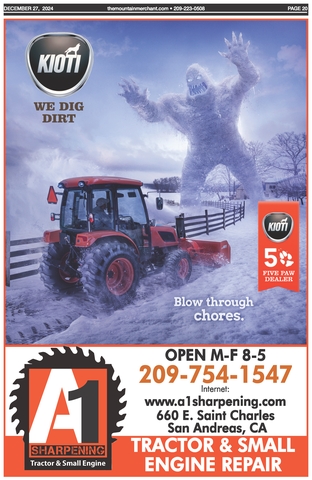 A-1 SHARPENING & SMALL ENGINE REPAIR, 660 E. St. Charles Street, San Andreas. 209-754-1547